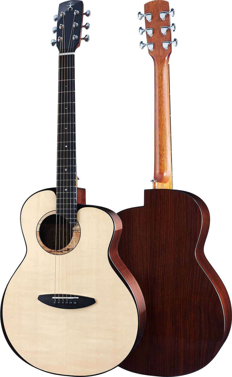 瑞士月亮云杉音色明亮清脆、甜美细致,有着圆润又优雅的声音特质。搭配传导速度快、音色温和的玫瑰木,不仅适合各种弹唱演奏也适合独奏或是伴奏。