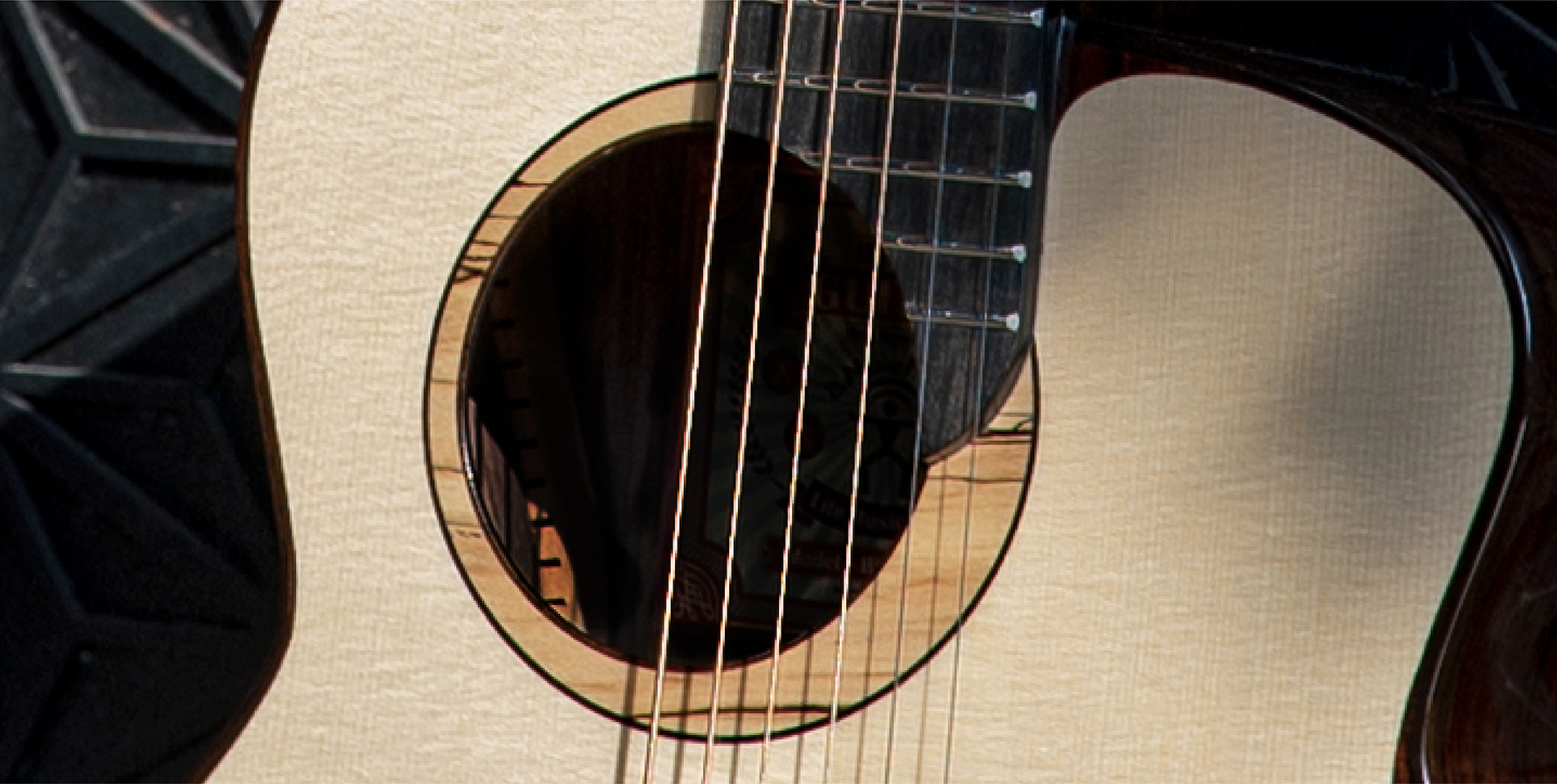 原创全单100与200的音孔饰圈皆为腐朽枫木,其特殊的自然纹路增添琴身设计的层次与细节。