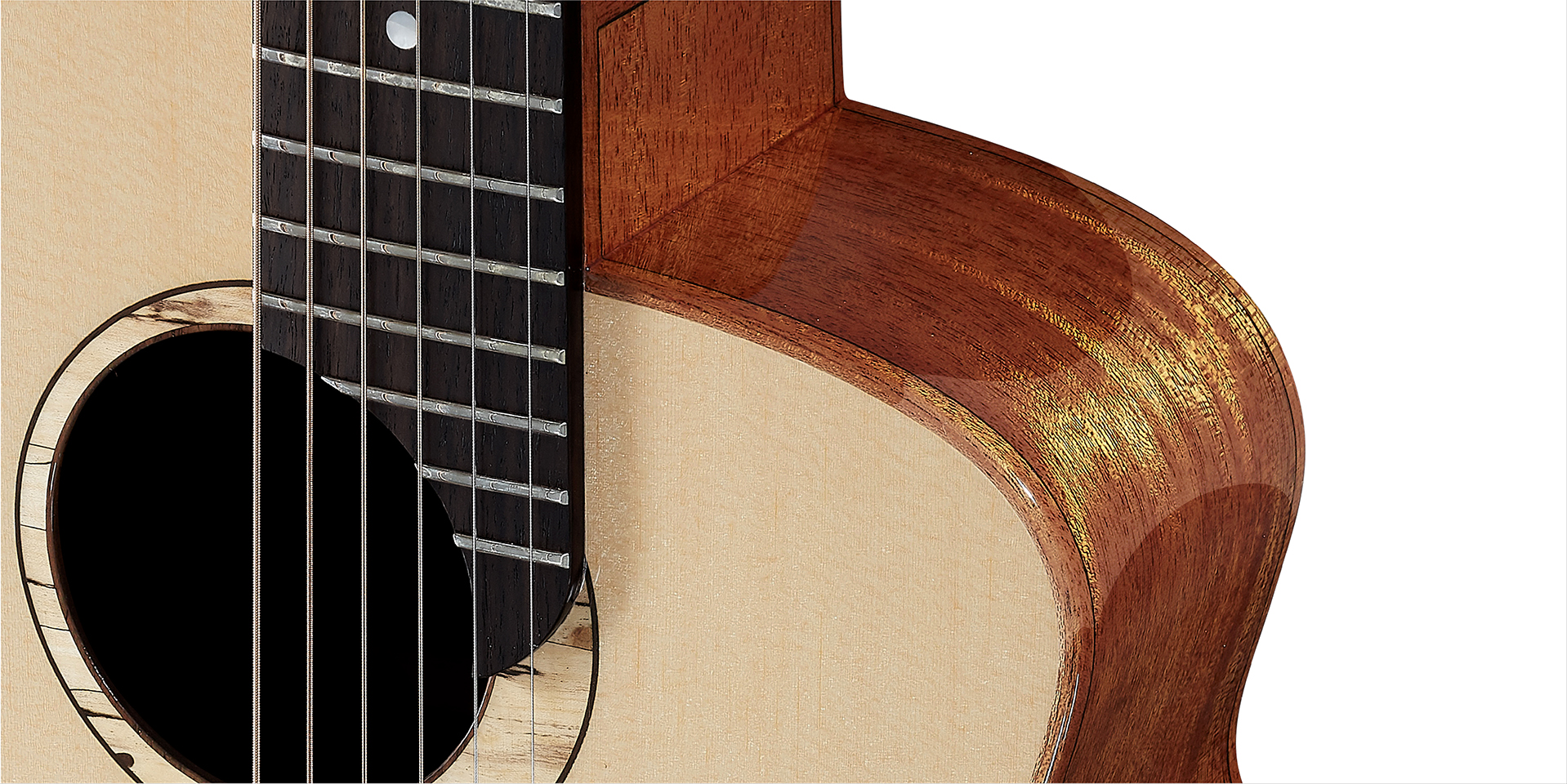 琴身使用高透亮光漆,漆面经过反覆的喷漆、打磨、风干处理,漆面薄而透亮,展现高度光泽感。