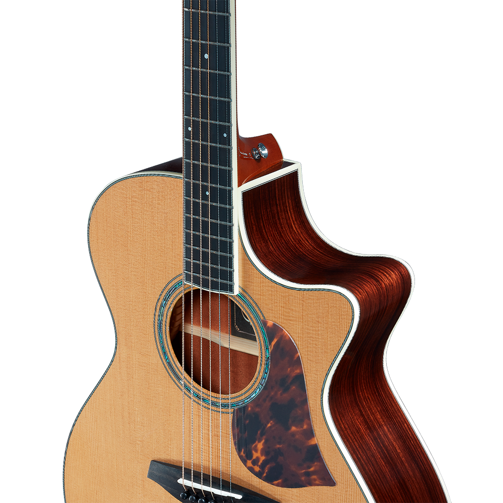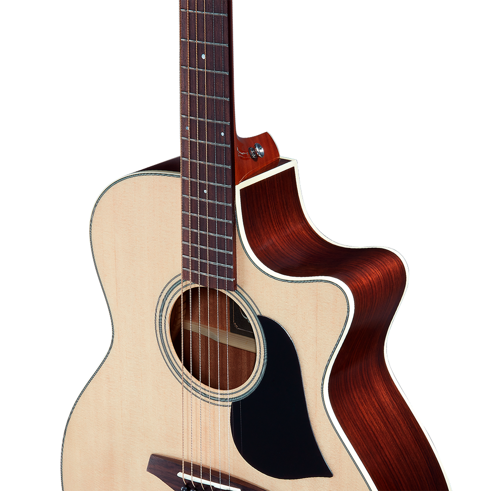 舒适的演奏体验:GA 体型的轮廓设计比 Dreadnought 型更为纤细,让演奏者在弹奏时感到更加舒适。这个设计特别适合长时间演奏和指弹技巧。