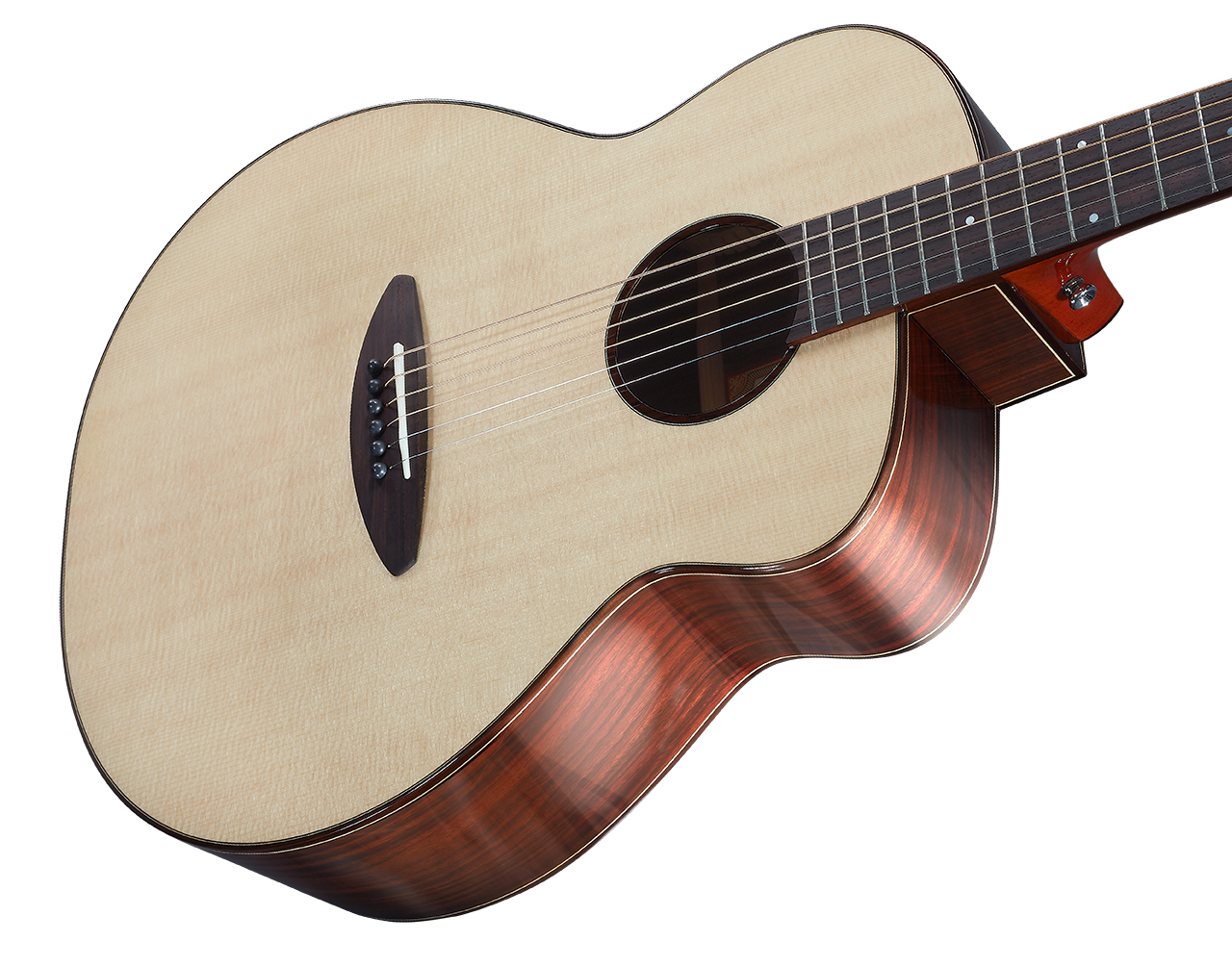 LF系列不拘泥于任何既定的传统吉他形态,它不是 Grand Auditorium,不是 Parlor,也不是Dreadnought,而是完全独一无二的声学体验。 LF23 的音色柔软而富弹性。得益于 彩虹人 经典的鸟吉他桶身圆弧与 101度 X 立木结构支撑,赋予音色丰富的层次与深度。面板的 Q 弧拱度进一步强化了音色弹性,宛如高端弹簧般震荡出灵动的共鸣。当您弹奏时,与音符的共鸣瞬间连结,带来难以言喻的同步感,这不仅仅是一把吉他,而是融入您音乐表达的细腻伴侣。