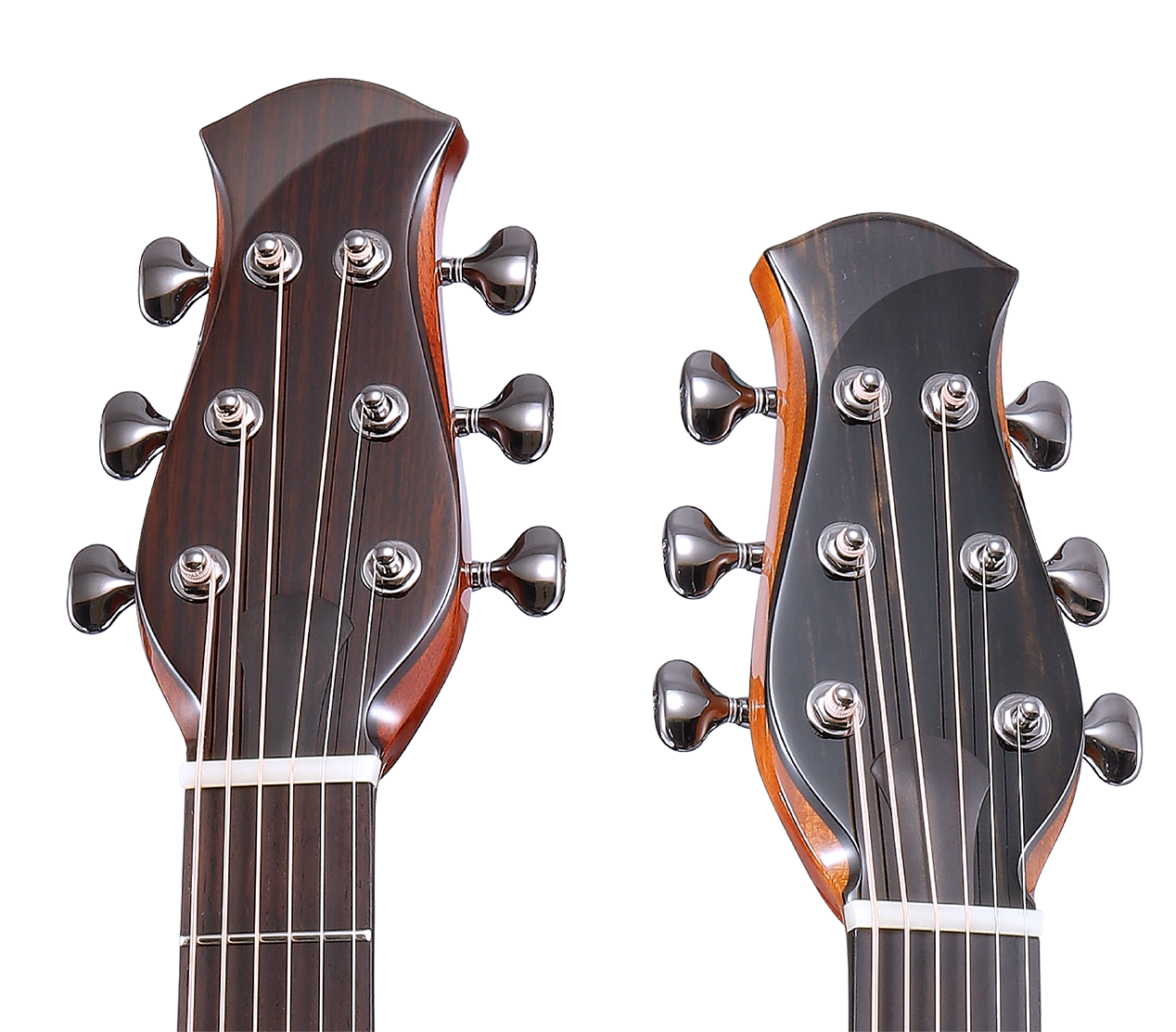 以制琴大师杉田健司的灵感为基础,LF550、LF660的琴头采用层叠玫瑰木、乌木手工打造,展现立体之美与内敛优雅。搭载 GOTOH 510 弦准器,结合实用性与高级工艺的完美结晶。