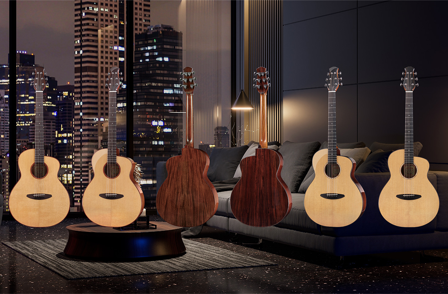 标志性的收腰切角设计、经过精密调校的 101° X 型音梁以及增强音量的 Q 弧拱面结构,这些设计共同带来温暖、均衡且精准的音色表现。不论是民谣拨奏还是指弹演奏,LF 时光熟化系列都为艺术家的音乐语言提供了亲密且灵敏的回应。