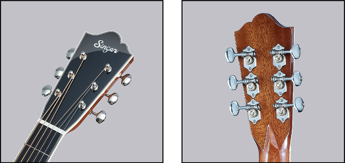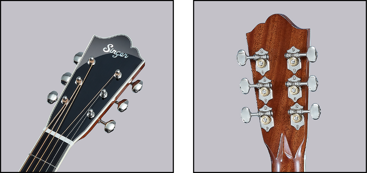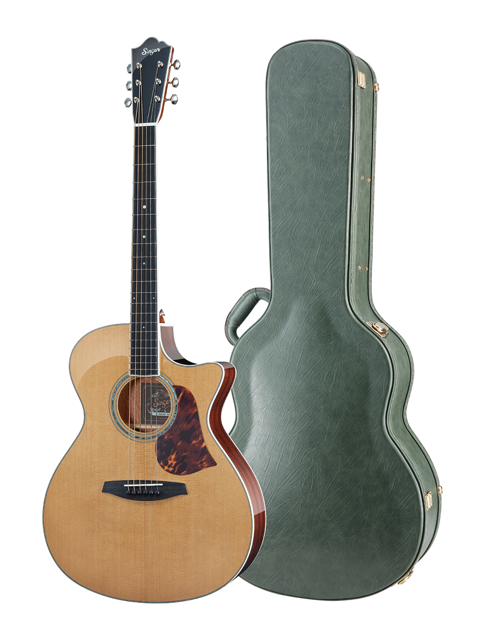 SINGER 吉他的旗舰之作,专为追求卓越的音乐家设计。当经典的设计元素被重新想像,透过现代工艺再次刻画于世,从琴身到指板再到琴头的象牙白镶边,以及琴头 logo 和音孔花圈的贝壳镶嵌,每一处细节皆展现出对传统的致敬和低调的精致美,将传统与创新完美结合。