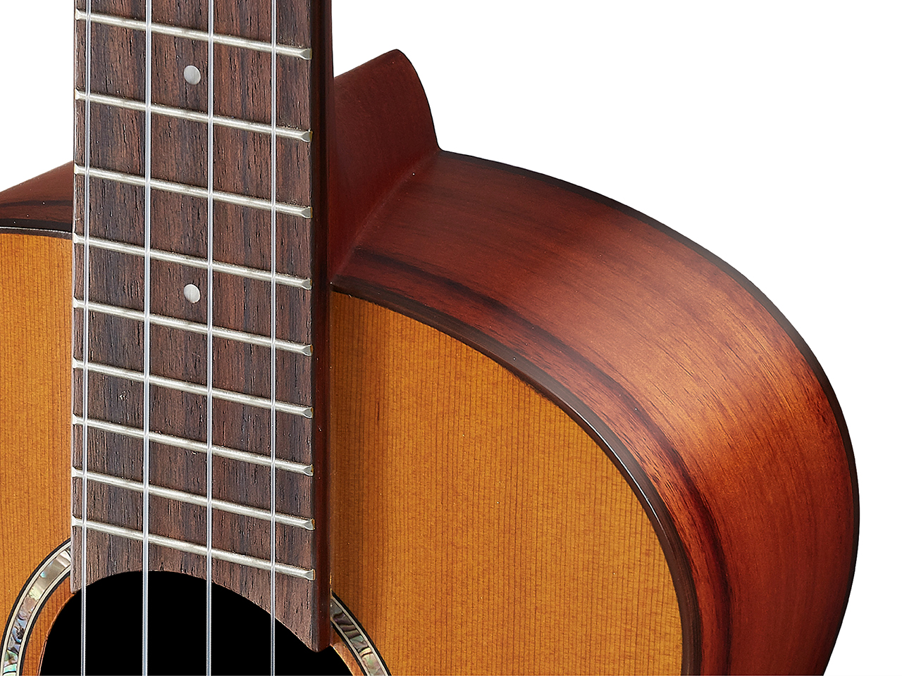 玫瑰木的硬度较高,气孔多富有丰富油脂的特性,让玫瑰木指板能适应各种环境。琴颈与指板经过抛光、打磨、倒角、去毛刺等多种细节程序处理,让持琴手感更加舒适。拥有19格琴格让弹奏音域更广。