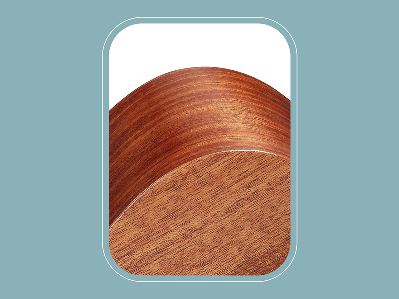 桃花心木,纹路较直,质地坚硬重量轻,声音传导较快,音色清脆高亮。弹奏时高频较有颗粒感,低频的呈现较温暖丰富。 合板木材音色稳定,坚硬不易弯曲变形的特性,较不受气候与湿度变化影响,能适应劣质的环境。中层使用白杨木,维持木头之间良好的传导之外,能有效减轻重量。