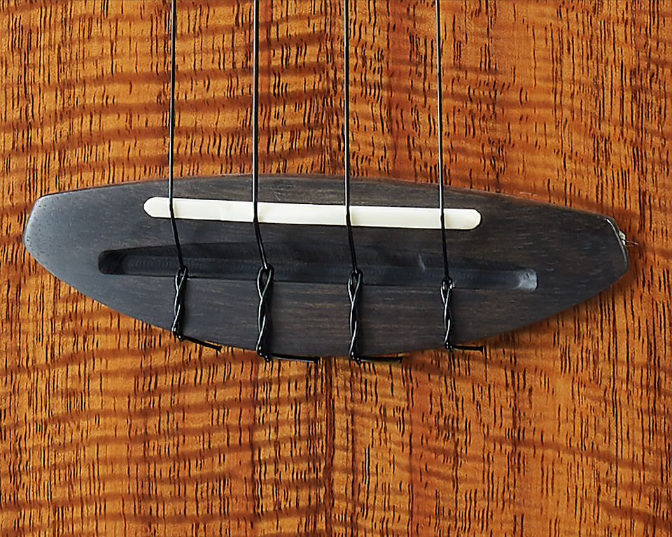 aNueNue的微笑造型琴桥,使用乌黑色泽的乌木,能支撑琴的后段琴弦张力。搭配水牛骨弦枕,让琴的延音有力,且拥有纯净的音色,质地坚硬清脆,能有效的传导琴弦的共鸣。