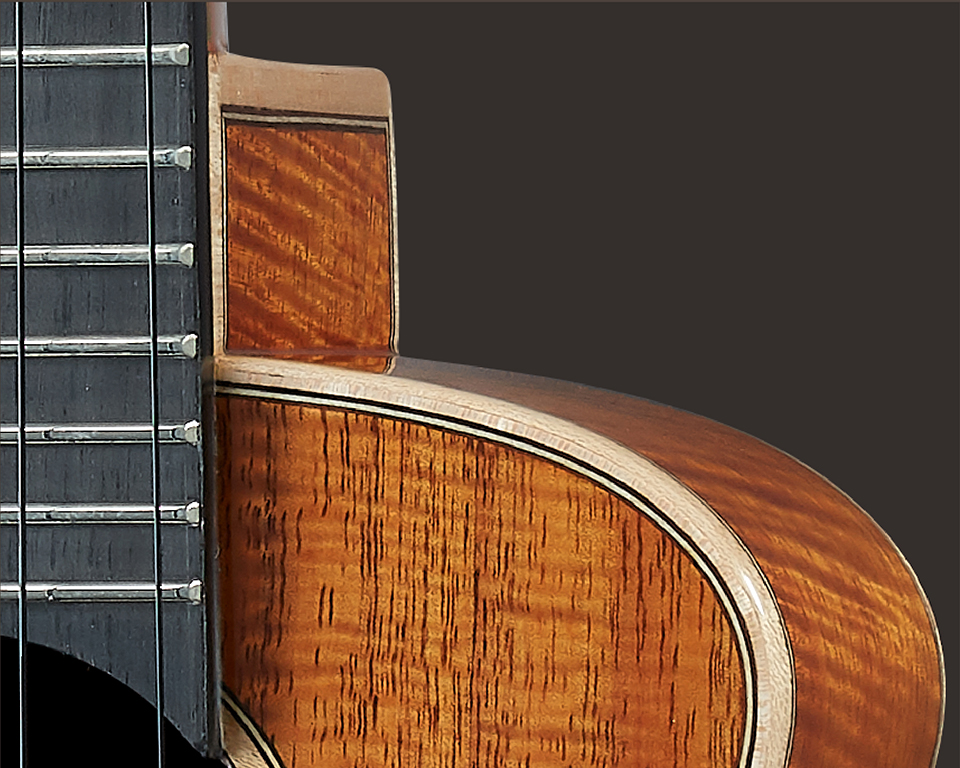 5K系列采用精选级别的5A夏威夷相思木,外观令人叹为观止。我们的5K系列采用Mitsuta标志性的X音梁。同时让尤克里里具备非常清晰的泛音、温暖的中音和深沉的低音。5A等级的相思木木材的密度及硬度十分出色,可创造出极为平衡的音色、良好的动态范围、丰富的低音和绵长的延音,几乎可以胜任所有的演奏风格,更是值得收藏的珍贵乐器。