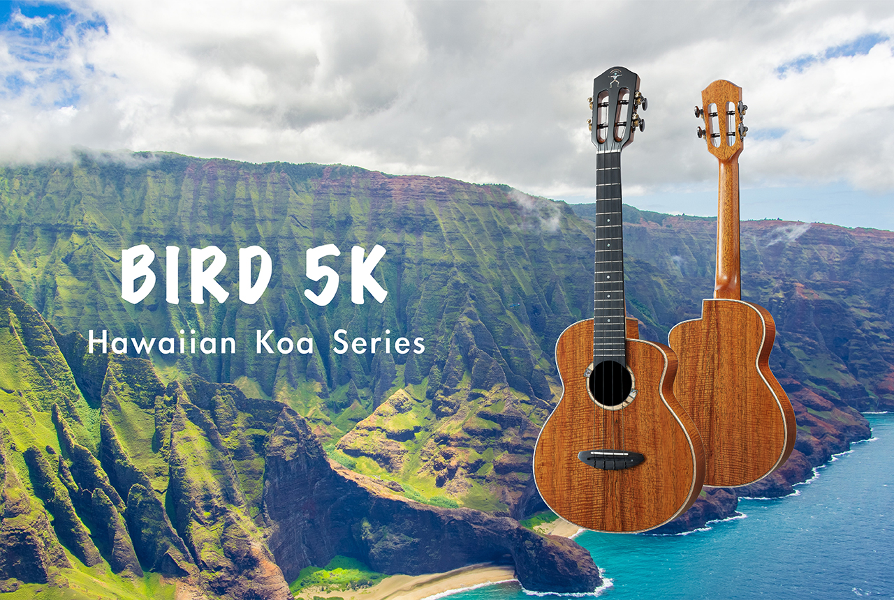 BIRD 5K为全单板尤克里里,以与日本制琴师光田守彦合作设计的鸟吉他为原型,转变为尤克里里桶身,拥有更多的共鸣空间。选用彩虹人珍藏数年5A级夏威夷相思木,经自然风干长达数年,木纹丰富、音质饱满,因特殊木纹收集不易,数量少,是独一无二无法多得的尤克里里。