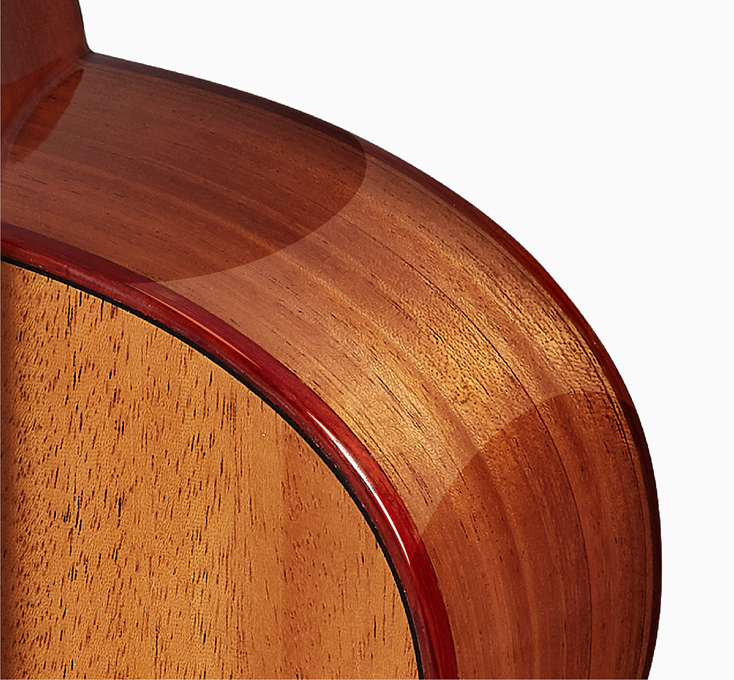 不仅是木质的自然美,漆面更是采用需经过多道繁复工序手艺的高透亮光漆来制作。这层油漆不仅保护木质,也让琴身表面拥有如镜面般的光泽,闪闪耀眼。反射着阳光与舞台灯光,细腻且动人。仿佛每一次的弹奏,不只是音符的跳跃,更是光与影的共舞。