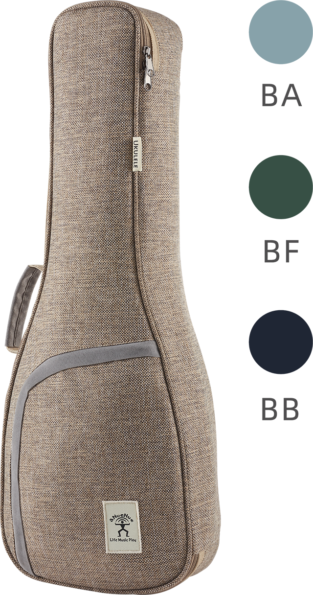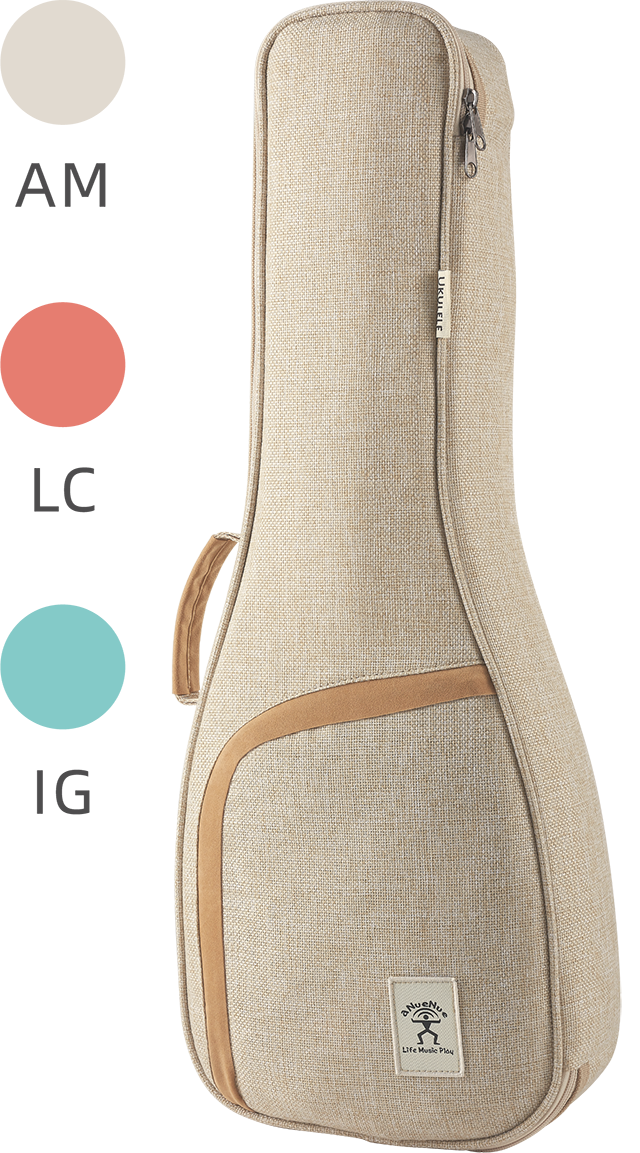 随琴附赠UC色彩系列专属的亚麻加厚琴袋。以米色与咖啡色亚麻面料制成。天鹅绒里布覆耐摔抗震的珍珠棉,琴袋厚度达2公分。前侧有拉链口袋可收纳,有手提与背面双肩背带供携带方便。