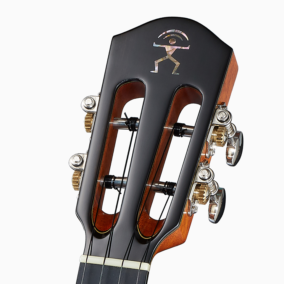 古典琴头造型上以白贝镶嵌LOGO 搭配德荣开放式弦钮