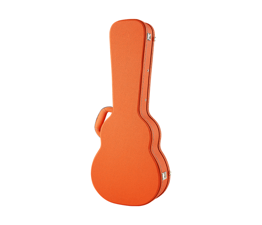 随琴附赠量身打造的橘色款木制琴盒,外层由合成皮革包覆制成,琴盒内有收纳盒设计可收纳,内里有银白色绒毛保护,厚度达2公分,让您的琴受到绝佳的保护。侧边有单边提把可供手提携带。